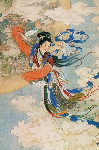 La légende de Chang'e Il y a fort longtemps, la Terre avait 10 soleils. C'était bien trop pour chauffer la planète et très vite, les soleils firent bouillir l'eau des mers, asséchèrent les terres, rendant le peuple affamé. Les hommes supplièrent alors Hou Yi, archer émérite, de les aider. Celui-ci réussit à décrocher neuf des dix soleils à l'aide de son arc, en laissant un seul, celui qui nous éclaire encore aujourd'hui. Cependant, devenu roi Hou Yi se comporta en tyran. Voulant obtenir l'immortalité, il alla subtiliser l'élixir de longue vie. Mais sa femme Chang'e, voulant épargner au peuple ses souffrances, s'empara de la fiole et but elle-même le breuvage. Son corps, devenu léger, flotta jusqu'à la lune. Hou Yi, bien que furieux, était fort amoureux de sa femme et décida de ne pas décrocher la lune avec l'une de ses flèches, épargnant ainsi son épouse. Ainsi naquit la légende de la fête de la Lune. |