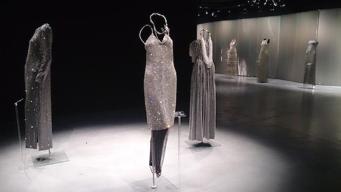Au rez-de-chaussée, place au Daywear qui tend vers l'élégance androgyne minimaliste aux couleurs neutres, introduisant une nuance entre le gris et le beige appelé le greige. Au premier Exotismes où l'on admire les créations aux influences ethno-chic, tandis qu'au deuxième ce sont les Chromatismes, moins connus chez Armani, qui dominent, tels le noir, le blanc et le rouge. Le dernier étage dédié à la Lumière rejoint l'apothéose. Ici les robes en tulle et perles argentées ou strass aux reflets lumineux exaltent la féminité des mannequins moulés dans l'habit.