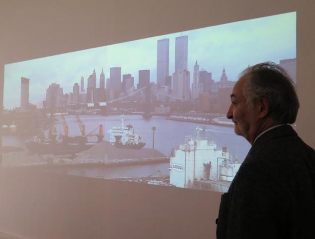 Jacques Attali devant l'installation de Wolfgang Staehle, 2001 (credit photo : Sophie Her)