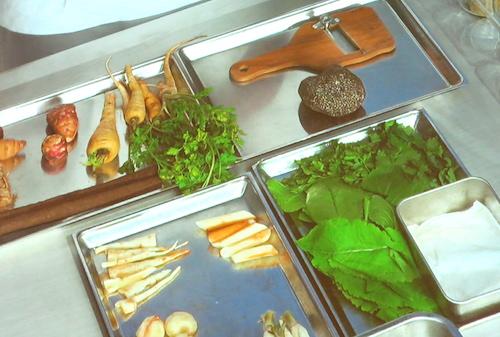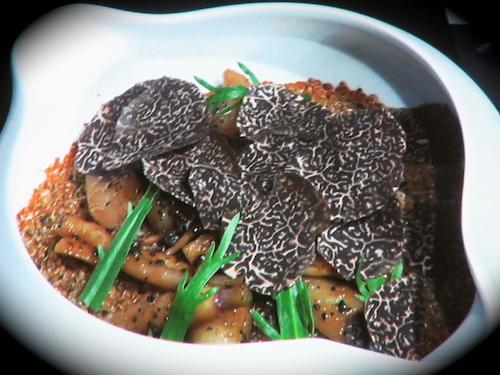 Accompagné du Chef des lieux, Romain Meder, ensemble ils ont présenté hier un des plats actuellement proposé au menu du Plaza Athénée, une carte très petite qui propose 6 légumes et 6 poissons. Un plat terrien, qu'il qualifie de plat modeste, composé de quinoa cultivé en Anjou, accompagné de racines diverses (salsifis, fenouil, etc.) selon la production des potagers de Versailles ou des petits producteurs cuits au bouillon de poule, et son jus de truffe noire, complété d'une touche de vinaigre pour exciter le palais.