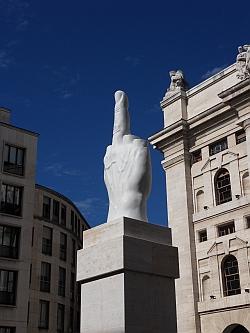 Ainsi ?L.O.V.E.', ou encore ?Omnia muna mundis' représente une main levée, ayant comme modèle celle d'Hitler, avec les doigts coupés à l'exception du majeur. En quelque sort un doigt d'honneur au capitalisme sur la place de la bourse, une dualité entre la provocation gratuite et la liberté d'expression artistique. La sculpture réalisée en marbre de Carrare mesure onze mètres de haut.