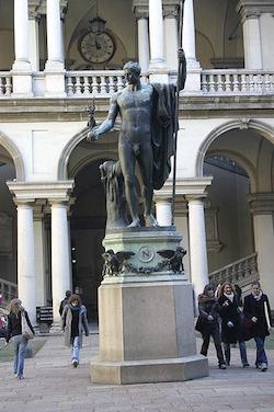L'emblématique statue de bronze représentant Napoléon comme Mars le Pacificateur située dans la cour de l'Académie des Beaux-Arts de Brera va être restaurée. La sculpture, qui date de 1809 fait partie intégrante de l'entrée de la célèbre Pinacoteca du Palais. La restauration devrait durer un an. Elle a été rendue possible grâce au concours de la Bank of America Merril Lynch et son projet de conservation. La banque a choisi cette année le quartier de Brera et plus particulièrement ce symbole de la période napoléonienne de la cité lombarde. La particularité de la rénovation est qu'elle ne se fera pas en coulisse mais aux yeux des visiteurs. Un cube transparent, conçu par Mario Bellini protègera la statue et chacun pourra admirer l'évolution du lifting. Coût de l'opération : 221.000 euros, dont 38.000 pris en charge par la banque américaine.