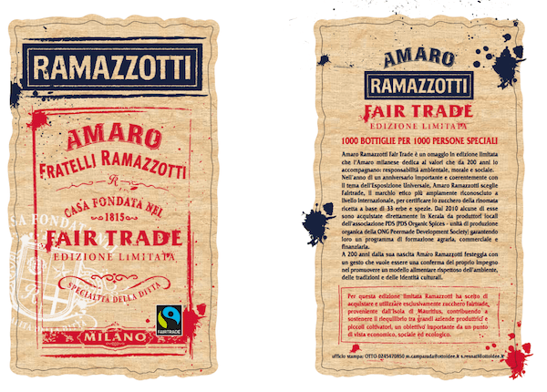 Pour fêter le succès de cette opération, mais aussi les 200 bougies de Ramazzotti, Pernord Ricard a lancé une édition spéciale limitée et responsable du célèbre Amaro "Ramazzotti Fairtrade".