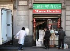 10h du matin, via Antonio Rosmini, un cri chinois répétitif, c'est le vendeur d'un journal en mandarin qui arpente le quartier. Il est tôt, mais le trottoir est déjà trop étroit. Le piéton doit zigzaguer entre un jeune Asiatique poussant un charriot, d'autres accroupis ou assemblés sur le pas de leur boutique et les cartons vides empilés à côté des poubelles. La petite rue, bordée d'enseignes chinoises, vit désormais au rythme des livraisons de marchandises Made in china à toute heure du jour et de la nuit. Autre spectacle, celui des acquéreurs sénégalais qui repartent avec des sacs poubelles bourrés d'articles de maroquinerie. "80 % des boutiques du quartier sont chinoises", précise Pierfranco Lionetto, président de l'association de résidents "Vivi Sarpi", hostile à la présence des grossistes chinois. Une transformation récente : selon lui, le rachat systématique des boutiques par les chinois date de 1998.