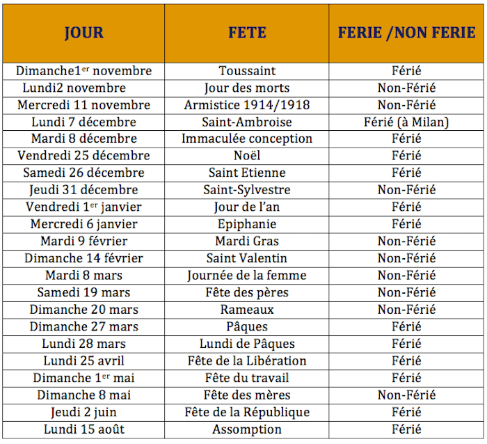 Demain, nos chères têtes blondes reprennent le chemin de l'école. Du moins celles qui vont à l'école française. Pour les autres, il faudra attendre le 14 septembre. Pour vous faciliter la reprise, la rédaction partage avec vous le nouveau calendrier scolaire de l'année 2014-2015. Fêtes, jours fériés et vacances, des dates qui ne concordent pas forcément entre l'Italie et la France. Un article à imprimer et à partager sans modération !