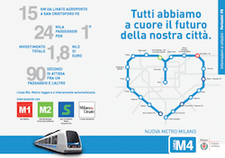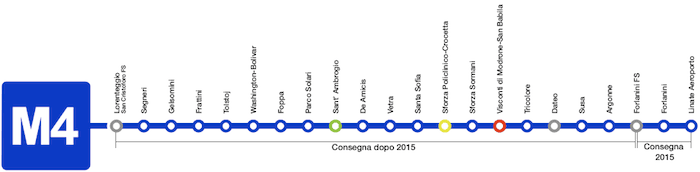 Cette nouvelle ligne de métro s'étendra de l'aéroport Linate à San Cristoforo, en passant notamment par San Babila dans le centre-ville. Des quartiers peuplés seront ainsi reliés au centre-ville par le métro. A terme, 21 stations verront le jour, sur 15 kilomètres.