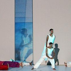 Cette symbiose entre les sons et les images électroniques est élaborée et parfaitement maîtrisée par non moins de quatre artistes-opérateurs numériques présents sur scène et tissant une toile multimédia permanente, sorte de matrice implacable et hypnotique dans laquelle évoluent huit danseurs accompagnés par le danseur-chorégraphe Jayachandran Palazhy.