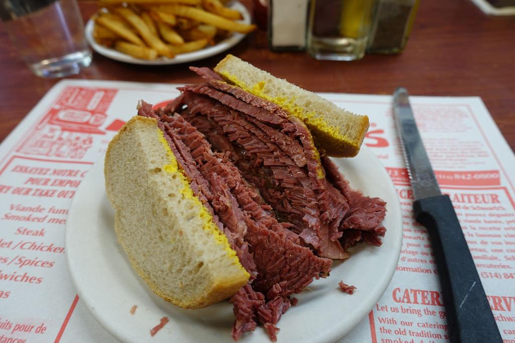 Le sandwich au b?uf fumé et d'épices, est une spécialité importée de la communauté juive mais très répandue au Canada, et spécialement dans la ville de Montréal. Le b?uf fumé est très semblable au pastrami traditionnel, très épicé. Pour goûter à ce fameux sandwich, allez au Schwartz situé à Montréal.