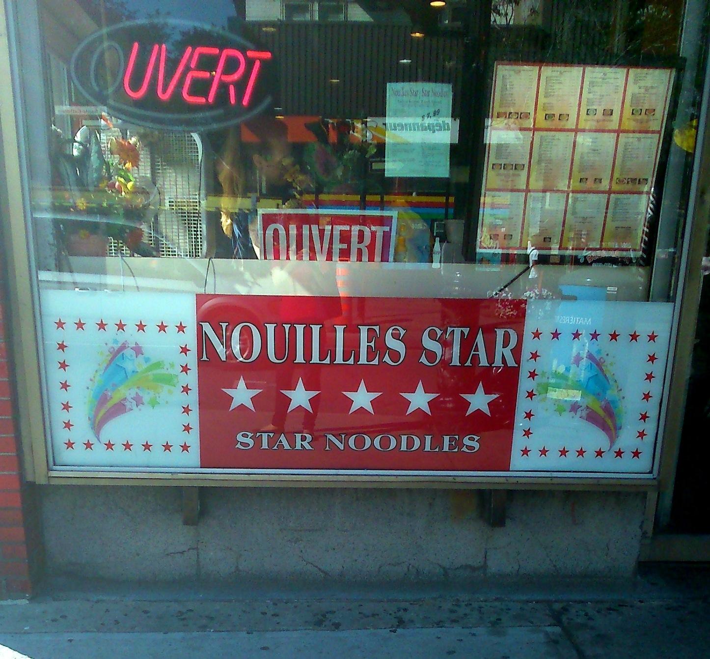 - En 1993, la cour suprême a statué que l'anglais et les autres langues étaient tolérées mais les caractères en français se devaient d'être plus grands. Les noms propres ou marques de commerces ne sont pas touchés par cela mais il doit y avoir des caractères francophones dans l'affichage des produits. Sans être contrainte par cette loi, certaines franchises comme KFC (Kentucky Fried Chicken) changeront leur appellation pour se rapprocher des Québécois. Celle-ci deviendra PFK (Poulet Frit Kentucky).