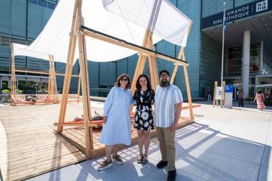 Porté par l’UQAM, la BAnQ et la SDC, le projet Arborescences incarne la nouvelle dynamique du Quartier latin. Pensé comme un parcours culturel à ciel ouvert, il mêle design, participation citoyenne et ancrage territorial. « Par son intégration à la piétonisation estivale, Arborescences traduit notre volonté de bâtir un environnement d’affaires sain, attrayant et durable », explique Julien Vaillancourt Laliberté. Installés dans la cour intérieure du pavillon Hubert-Aquin de l’UQAM et sur le parvis de la Grande Bibliothèque, ces dispositifs sont à la fois œuvre, mobilier urbain et lieu de rencontres, illustrant concrètement la posture « apprenante » que défendent les partenaires du quartier.