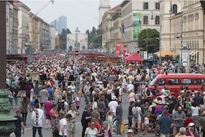 438 véhicules de pompiers, 200 historiques et 238 high-tech, défilaient sur 5 kms de Theresienstrasse jusqu'à Odeonsplatz. Un événement grandiose pour honorer, une deuxième fois cette année les bénévoles qui servent chez les pompiers de Munich depuis 150 ans. Ce défilé compte bien rentrer dans le Livre des Records.