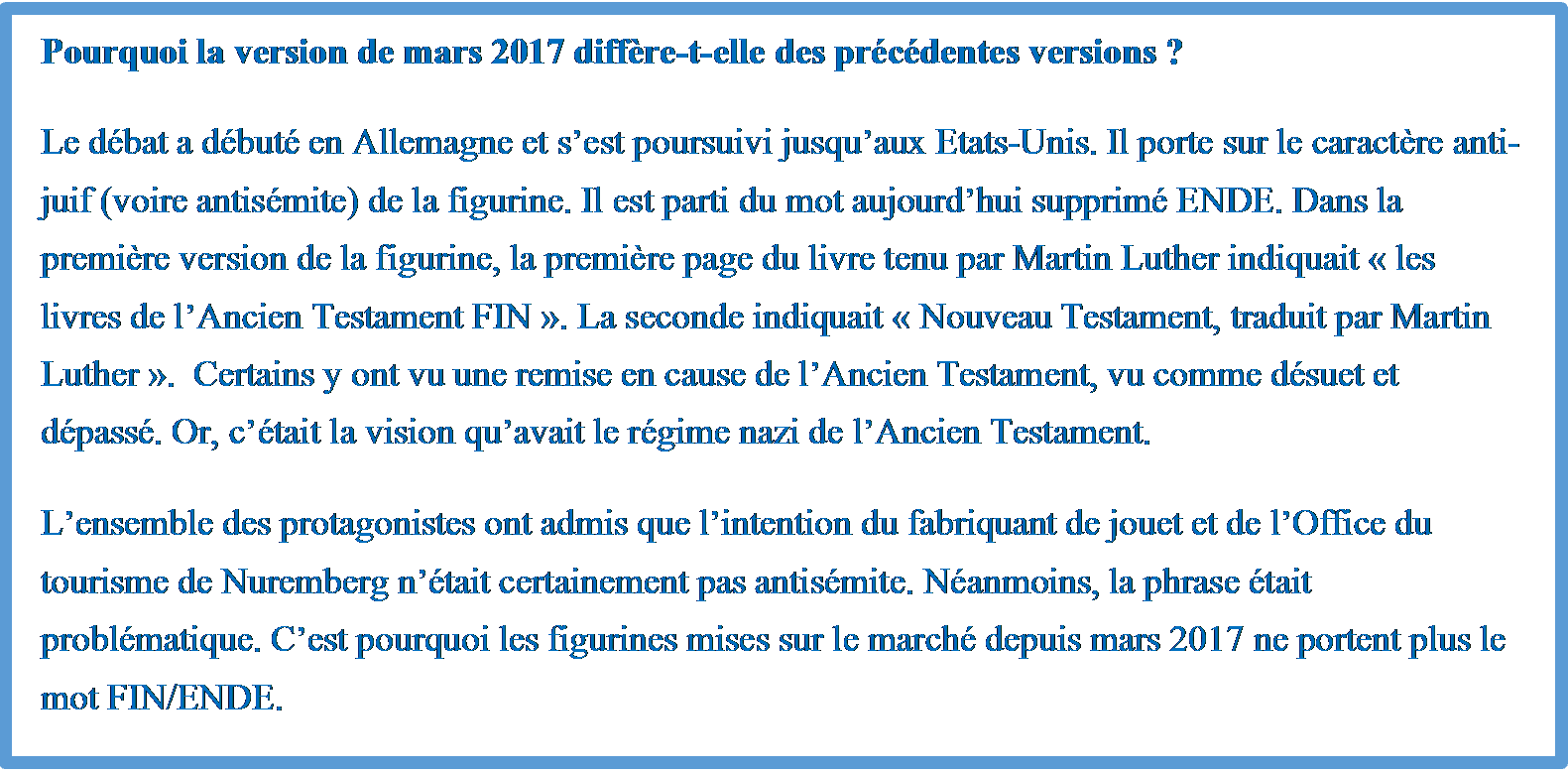 En 2017, la Réforme fête ses 500 ans et l'engouement pour le petit personnage Playmobil n'a toujours pas perdu son souffle. A l'heure actuelle, 750.000 figurines ont déjà été vendues, essentiellement en Allemagne mais également en Suisse, aux Pays-Bas et aux Etats-Unis.