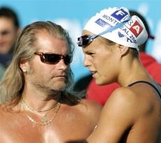 Laure Manaudou et son entraineur jusqu'en 2007, Philippe Lucas (AFP)