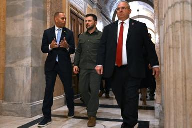 Tout au long de la journée, le président ukrainien a aussi tenu à exprimer sa gratitude envers le Congrès américain, qui débat actuellement sur le vote d'une nouvelle enveloppe d'aide à l'Ukraine, dont certains élus trumpistes ne veulent pas entendre parler.
