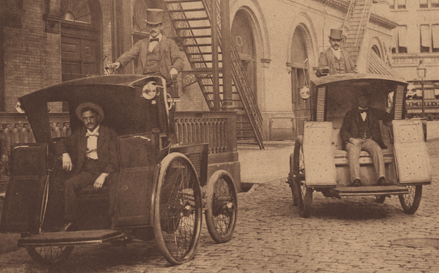 Le taxi new-yorkais trouve ses origines en 1897. Cette année-là, la Samuel’s Electric Carriage and Wagon Company met en service une douzaine de véhicules électriques dans les rues de Manhattan.