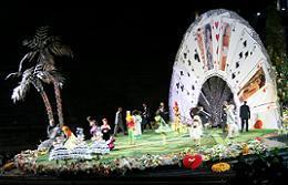 Vergogna ! Les applaudissements rythment l'histoire, précédés ici et là de quelques commentaires. Pour la scène de la réception où Violetta se montre à nouveau avec le baron qui l'entretenait, un immense jeu de cartes avec des femmes à moitié nues figure le jeu et la débauche. Des danseurs se lancent dans un strip-tease. C'en est trop pour les plus orthodoxes, "vergogna !"entend-on dans l'arène. Le spectacle se termine par un tonnerre d'applaudissements et de tapements de pieds, entrecoupés de quelques huées. Les metteurs en scène se font siffler. Le public, bien que souvent néophyte, n'hésite pas à se montrer exigeant et à manifester son mécontentement. Ils sont dans une arène. Corentine GASQUET. (www.lepetitjournal.com - Milan) mardi 4 septembre 2007