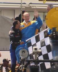 H.G. Delauze, Président de la Comex et S.A.S. Le Prince Albert II ont remis àPierre Frolla le fameux drapeau symbole du Grand Prix àenviron 100 m de profondeur, grâce au bras articulédu sous-marin.