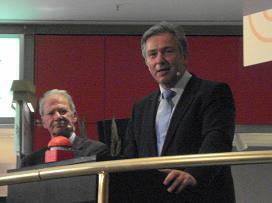 Klaus Wowereit, aux côtés de Pierre Féraud (Foncière Euris), a donné sa caution berlinoise au centre commercial mardi soir, lors de l'inauguration (Photo. LPJ Berlin)