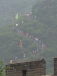 "Cédric, Jacques, Dominique, Arnaud…" un appel dans le car, à l'aéroport de Pékin, vendredi 17 mai. Tout le monde est là, malgré le retard d'un des deux avions au départ de Shanghai. Le bus démarre sous les applaudissements bon enfant, ce pourrait être une colonie de vacances. "Ca rigole pour l'instant, ça rigolera moins demain" prévient l'un d'entre eux, et oui, car le lendemain, c'est le marathon de la Grande Muraille, et sur les 43 personnes dans le bus, 38 coureurs vont tester la résistance de leurs mollets et de leur mental sur les marches irrégulières du mythique symbole chinois.