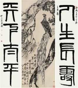 Cette ?uvre de Qi Baishi est un cas particulier, car pour les Chinois, elle est plus qu'un tableau ou bien alors elle démontre que notre conception de l'?uvre d'art doit aussi évoluer en fonction de la Chine. Eagle Standing on a Pine Tree a été réalisée en 1946 par Qi et présentée au Generalissimo Chiang Kai-shek pour ses 60 ans en 1947. Décédé en 1957, Qi Baishi est encore aujourd'hui un des artistes les plus appréciés en Chine et qui conserva une approche traditionnelle de la peinture combinant poésie, calligraphie, peinture et art du sceau en s'attachant à produire des sujets simples de la vie rurale et à peindre descriptions symboliques d'insectes ou d'oiseaux.