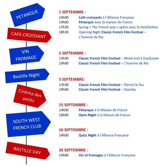 En ce dernier jour du mois d'août, nous vous proposons de découvrir le programme francophone et francophile de Perth pour le mois de septembre. Du cinéma, des spectacles, des soirées, un concentré de bonne humeur et de bons moments!