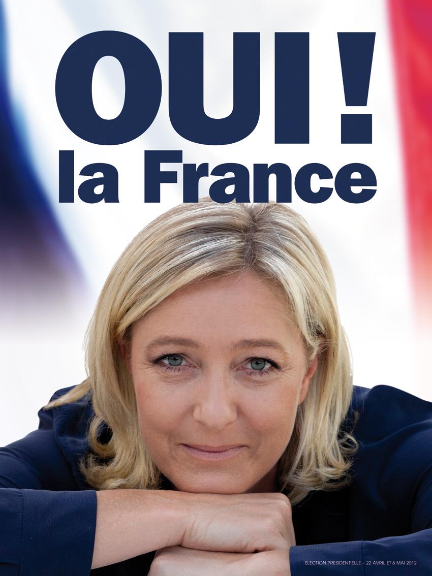 Mercredi 4 avril, le Front National a dévoilé la nouvelle affiche de campagne de Marine Le Pen. Photo resserrée sur le visage de la candidate frontiste, point d'exclamation remplacé par une virgule dans un slogan déplacé en bas de l'image, quelques changements ont été apportés pour une affiche plus sobre. Sur un fond bleu, sourire aux lèvres, Marine Le Pen regarde droit dans les yeux l'électeur. La candidate du Front National est créditée de 7% d'intentions de vote au 1er tour chez les Français de l'étranger, d'après le sondage réalisé par l'institut Opinion Way pour lepetitjournal.com.