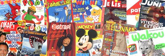 Pour ceux qui découvrent le plaisir de lire des histoires : J'aime Lire, Je lis déjà ... ; pour les passionnés de découvertes, d'actualité : Wapiti, Images Doc, Le Petit Léonard... ; autant de titres plein d'informations et de documents pour comprendre le monde qui les entoure. Et pour ceux qui aiment rire et raconter des blagues : Astrapi, Le Journal de Mickey... Enfin pour les adolescents des magazines pour répondre à toutes leurs envies (Okapi, Science & Vie Junior, l'Etudiant...).