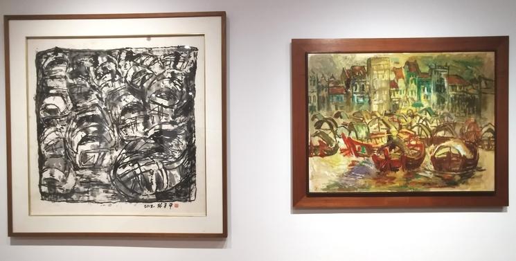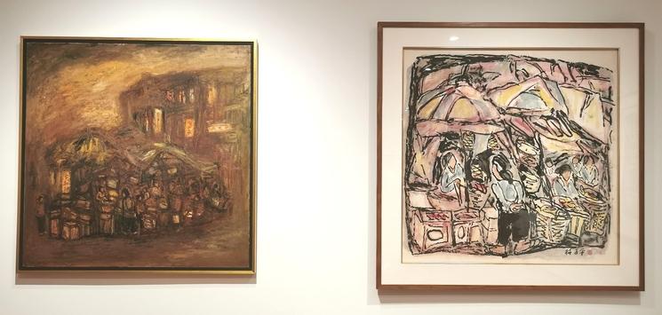 La première partie de l’exposition “From Dapo to Xiaopo” (qui signifie entre le grand et le petit quai) rassemble des œuvres peintes sur place et s’inspirant de scènes de la vie d’autrefois sur les quais de Singapour. La zone entre le grand quai et le petit quai est aujourd’hui comprise entre Outram Park et Kampong Glam. Vibrantes de vie, les peintures reprennent des tranches de vie dans les marchés, les cafés, à la mosquée et offrent une vision romantique des lieux témoins de l’activité essentielle de la ville. Lim fréquentait régulièrement les quartiers qu’il affectionnait et souhaitait dessiner. Il lui arrivait d’organiser des sessions publiques où il réalisait ses esquisses et exposait dans ces mêmes quartiers. La disposition côte à côte de peintures telles que “Chinatown” (1982) et “Hawker” (2013) ou encore “Boats” (2013) et “Singapore River” (1960) avec des mises en scène identiques mais une perspective et des mediums différents accroît l’effet du temps qui a passé et du maintien des traditions dans ces lieux incontournables de la vie singapourienne. Tel un nouveau langage visuel, son style s’exprime à travers des coups de pinceau au tracé brisé sur fond de texture pastelle. Afin de susciter un sentiment de réminiscence chez son public, Lim capture les lumières et les couleurs de la rivière et des marchés comme éléments atemporels.