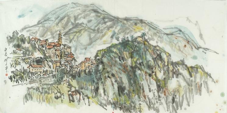 Dans la deuxième partie, “The world outside”, des paysages en dehors de Singapour font leur apparition, faisant suite à la résidence de l’artiste à Paris en 2000. Montmartre, Florence, ou encore un village médiéval des Alpes maritimes sont à leur tour l’objet d’observation de Lim qui adopte tantôt une technique de représentation horizontale inspirée des grands artistes européens du siècle dernier, tantôt une approche personnelle en signant avec des caractères chinois pour exprimer le rapport à ses origines et au sentiment de se sentir chez soi dans ces terres d’accueil. Deux peintures à l’huile, “Venice” et “Ponte Vecchio, Florence”, sont au centre de cette section consacrée au monde extérieur. Elles ont été réalisées en 1996 lors d’un voyage de Lim en Europe avec la Société des artistes chinois. Toutes deux font preuve de la créativité de Lim qui fait le choix d’utiliser des techniques différentes pour dépeindre des paysages culturellement semblables, Venice apparaissant comme une ville floue, dans le mouvement, alors que le pont de Florence ressort ennobli par les contours accentués qui donnent grandeur et profondeur au monument. Quant au petit village méridional de “View of the Hills” (2000), il semble disparaître dans la nature foisonnante à laquelle l’artiste réserve une place de choix au centre du tableau. Sumatra et le lac Toba font également partie des représentations du monde extérieur que l’artiste centenaire a réalisé lors d’une expédition en 1970, s’immergeant dans la culture de groupes ethniques indonésiens et dans l’atmosphère tropicale environnante.