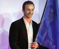 (Vincent Defrasne lors de la remise du drapeau olympique, AFP)