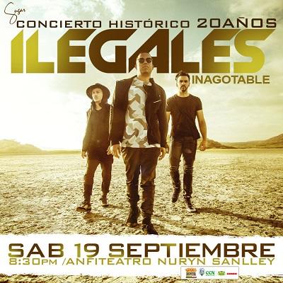 Le rendez-vous qui s'annonce d'ores et déjà historique pour les fans du groupe Ilegales. Le trio (ex-quatuor) dominicain Ilegales formé en 1995 et mené aujourd'hui par le chanteur Vladimir Dotel avec Juan Carlos Campos et Lumy Pimentel célèbre ses 20 ans de succès ce samedi 19 à Saint-Domingue.