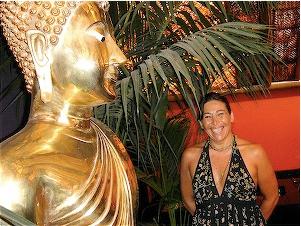 L'établissement accueille jusqu'à 90 couverts dans un lieu très zen, à l'ambiance fraîche et boisée, sur un vaste espace ceinturé de bambous vernis, coiffé de tentures de lianes tressées, où sont disposées d'élégantes tables ébènes, le tout sous le regard impassible d'un monumental Bouddha en bronze trônant sur l'estrade. Tout ce qui compose cette architecture intérieure provient de Thaïlande, jusqu'aux appliques murales, selon Françoise Peyret, elle aussi adepte de cette cuisine un tantinet New Age, que les amateurs de plats pimentés apprécieront. Ceux qui sont vigilants sur "leur tour de thaïe"aussi.