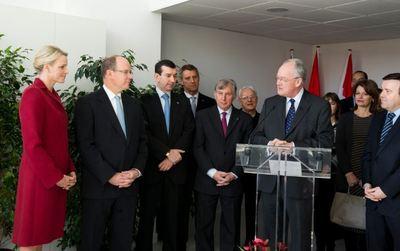 La famille de Guy Brousse entourée de S.A.S le Prince Albert II, le Maire de Monaco Georges Marsan et Camille Svara, Adjoint au Maire. Photo (c) DR