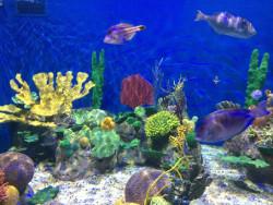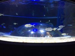 Plus on avance, plus les poissons se colorent et se diversifient (tout en restant en général bien petits). Avant d'arriver à l'aquarium préféré des enfants ? celui avec Nemo et Dory, on passe sous un premier bassin rond dont la structure permet de se retrouver au milieu de celui-ci dans une sorte de bulle ? les plus grands et/ou âgés auront du mal à se faufiler dans l'ouverture située au sol.
