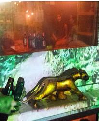 Collection d'objets un peu partout, murs de pierre et néons rouges donnent au restaurant un coté boudoir-rock un peu déroutant, mais original et sympathique. Grande table haute à droite, où l'on peut dîner en petits groupes.