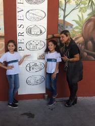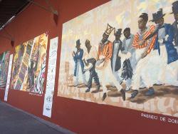 Entre les graffitis représentant notamment des esclaves sont exposés des carreaux de céramique peints à la main par les enfants de six écoles de quartier populaires de la ville, représentant leur vision des droits de l'homme.