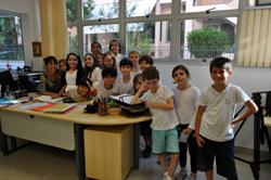 Avant de conclure notre entretien, un dernier sujet est évoqué, le départ prochain de Mme Gizon. La mine triste et déçue, les enfants entendent la réponse de leur Directrice. Avec tact et tendresse, elle leur explique qu'elle doit rentrer en France pour retrouver sa famille, profiter de son premier petit-fils : "Il est temps pour nous de rentrer, je suis triste bien sûr car je vais vous quitter mais mes enfants et ma famille m'attendent en France". D'un ton rassurant, elle évoque déjà la nouvelle directrice qui la remplacera à partir du mois d'Août, Carole Brandou. Elle leur dit qu'elle vient du Gabon, et qu'elle connaît bien le Brésil pour avoir été en poste à São Paulo. Elles doivent se rencontrer bientôt pour parler ensemble de l'école et passer les dossiers. Mais en attendant, les apprentis journalistes immortalisent ce moment privilégié passé avec leur Directrice bien aimée. Gros plan et photo de groupe pour terminer ce que les enfants qualifieront après "d'interview trop cool" !