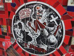 Tout bon Touriste à Rio de janeiro est déjà passé au moins une fois devant ces fameux escaliers décorés de faïences à Lapa et y a surement trouvé, assis sur les marches en train de peindre, un énergumène caché derrière une moustache à la Dali. Lui, c'est Selarón, chilien d'origine, carreleur-peintre-sculpteur-globe-trotter, j'en passe et des meilleures. Son ?uvre : "les escaliers les plus originaux du monde" pour reprendre ses termes, sur lesquels il travaille depuis 20 ans. En effet, on ne peut nier l'ampleur du labeur : 125 mètres de haut, 215 marches, plus de 2.000 faïences venues de 120 pays différents. On a quitté la sphère de l'hurluberlu qui décore sa terrasse à l'aide de nains-de-jardin. Selarón s'est attaqué à une rue entière, une ?uvre gigantesque dans laquelle s'échine quotidiennement, "un rêve fou et unique qui prendra fin avec ma mort" nous dit-il. "C'est mon tribu au peuple brésilien".