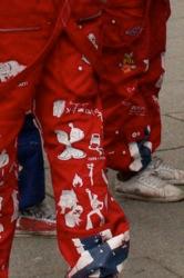 Pendant la période des russ, les lycéens portent salopette. La couleur dépend de la nature de leur établissement. Rouge pour les lycées classiques, bleue pour les lycées spécialisés en économie (photo : T.G. SoKT)