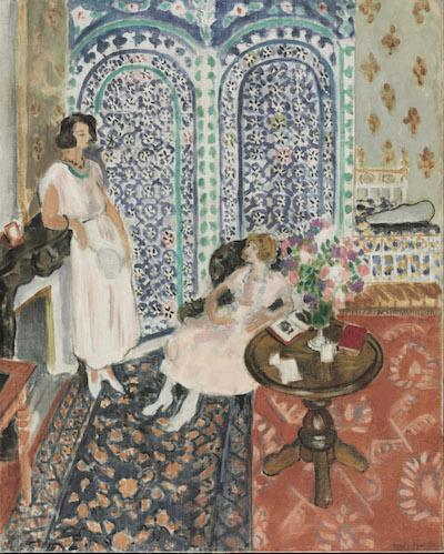 Le mystère se lève sur son Odalisque, Harmonie bleu (1921 - L'Orangerie) ou sur ses Jeunes filles au paravent maures (1921), dès lors que l'on comprend l'atmosphère qui régnait dans l'atelier du peintre : des vases islamiques, des tissus orientaux et des cages de tourterelles blanches comme décor pour ses modèles féminins.