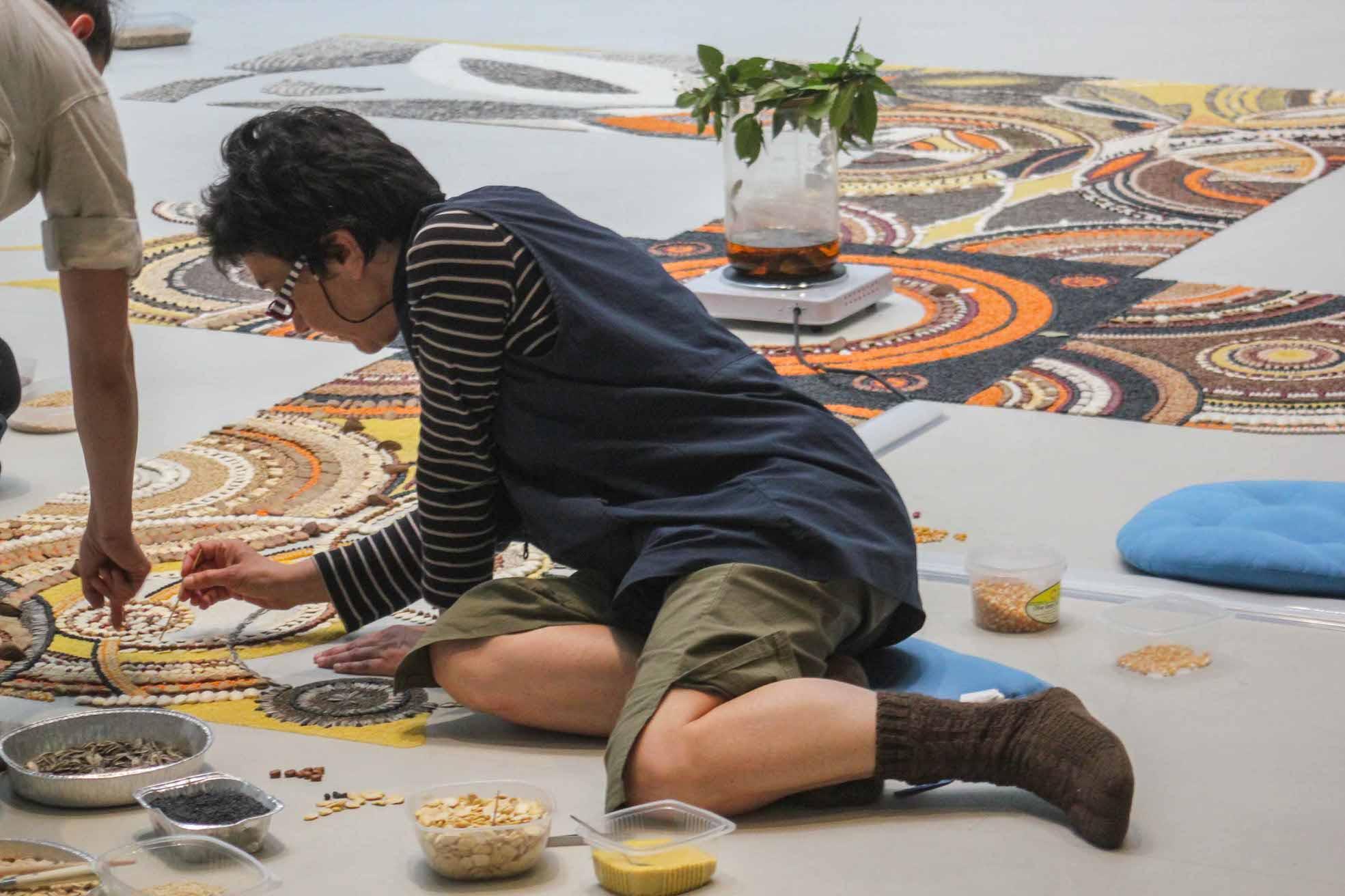 Autre installation à ne pas rater, les ?uvres de Bruna Esposito dans la galerie 2 et la salle Gian Ferrarri au premier étage du musée. Faisant partie de l'exposition The Place to Be, l'installation e così sia? est actuellement en cours de réalisation par l'artiste qui vient tous les jours jusqu'au mois de juin, disposer des légumineuses et céréales sur le sol du musée en créant ainsi des formes sinueuses et colorées. En son centre, une plaque chauffante et un récipient d'eau avec une branche de laurier. C'est une ?uvre au pouvoir symbolique fort qui souhaite véhiculer positivité et espérance. Le jour de l'inauguration, l'artiste l'a présentée au public en offrant à chacun un sachet de ces céréales et légumineuses accompagné d'une poésie de Paola D'Agnese :