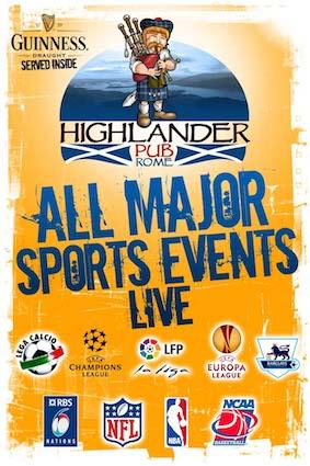 Le Highlander est un pub écossais agréable situé en plein coeur du centre historique de Rome - ouvert 365 jours par an! Si vous voulez apprécier une bonne bière, soutenir votre équipe, ou tout simplement vous plonger dans une ambiance écossaise .... Ceci est l'endroit pour vous!