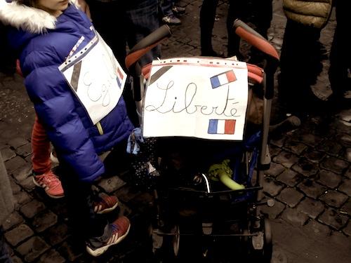 Ils étaient plus de 500, ce dimanche 11 janvier 2015, sur le parvis de la Piazza Farnese, à Rome, pour rendre hommage à Charb, Cabu, Wolinski, Tignous et les autres. Comme le temps, l'humeur était morose. Français ou Italiens, tous avaient le même mot en bouche, SOLIDARITE. Avec ce rassemblement, ce qui est sûr, c'est que la solidarité n'a pas de frontière.
