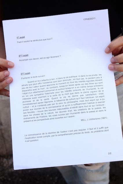 Nous avions un peu d'appréhension par rapport à la difficulté des sujets. Les lycéens scolarisés en Amérique du Nord ont passé leurs épreuves avant nous et leurs sujets étaient bien plus difficiles, voire à la marge du programme de terminale. Ici, cela n'a pas été le cas, nous avons traité tous ces sujets en cours et les élèves avaient été bien préparés. En plus des cours, nous avions d'ailleurs fait une conférence sur le thème du progrès technique et de son implication sur notre moralité au cours de l'année, l'un des sujet de dissertation des terminales scientifiques.