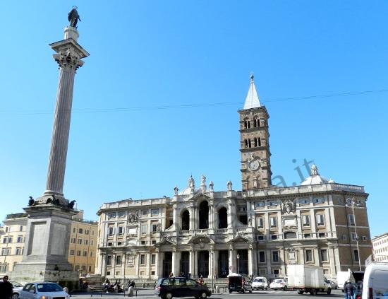 Située sur le sommet du col Esquilin, la basilique Sainte-Marie-Majeure fait partie des quatre basiliques papales de Rome. C'est actuellement la plus grande et la plus ancienne église consacrée à la Sainte Vierge. Selon la légende, elle fut fondée à l'endroit où eut lieu une miraculeuse chute de neige le 5 août de l'an 356, là même où le pape Saint Libère avait eu une apparition de la Vierge Marie. Mais en réalité, elle fut construite au Vème siècle sous le règne de Sixte III. La nef fut ornée de panneaux de mosaïques, qui présentent des scènes de l'Ancien Testament. Aujourd'hui, sur les 42 panneaux originaux, il n'en reste que 27. Quant au plafond, on dit qu'il a été décoré avec le premier chargement d'or provenant des terres nouvelles découvertes en Amérique.
