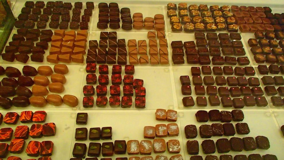 Il y a effectivement une ligne de chocolats été, souvent plus fruités, et moins de ganache qui ne supporte pas la chaleur - les chocolats ici n'incluant pas de conservateurs. L'été est aussi la saison pour déguster rochers, pâtes d'amande, calissons, pralines ?. A partir de l'automne, les ganaches reviennent en force chaque année sur le présentoir.