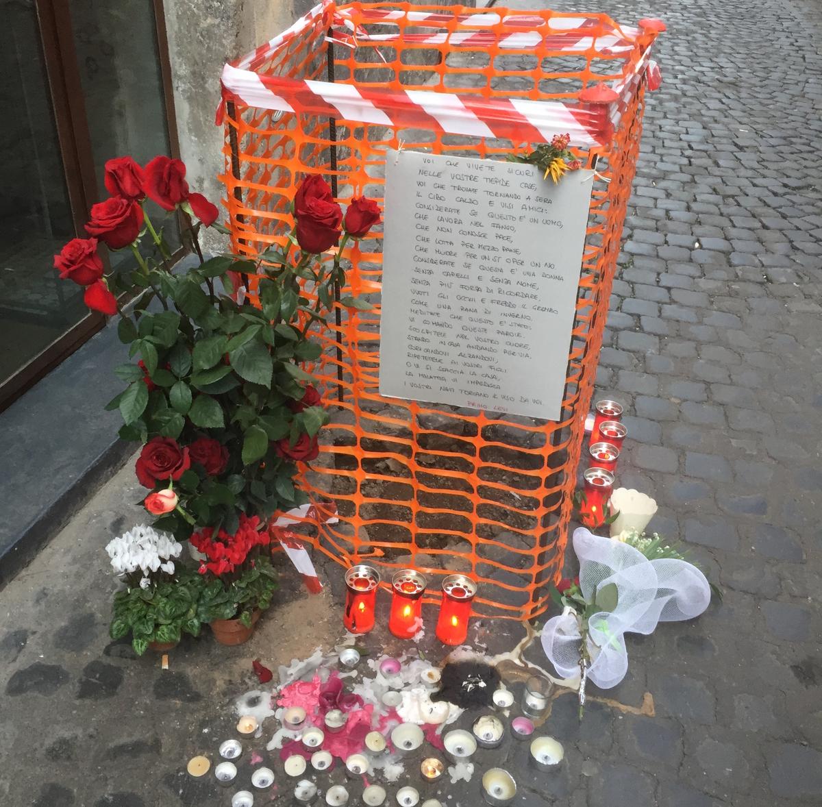 Une veillée aux chandelles a été organisée hier et un extrait de l'ouvrage classique de Primo Levi, Si c'est un homme, a été accroché au mémorial improvisé.