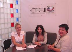 De gauche à droite : Marie-Laure Bellin, responsable de Job Chambre, une VIE du CFCII et Chantal Pallin Zanardi, Sécrétaire générale de la Chambre de commerce et d'industrie Française en Italie.