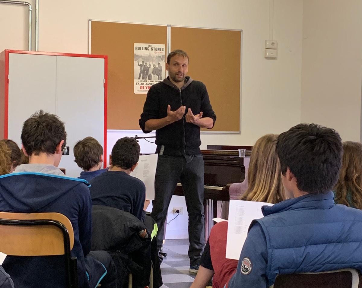« C’est riche! Nous ne sommes pas dans une dynamique où l’on veut jeter les bases d’une carrière, comme ce que l’on peut espérer de la France ou de la Belgique. L’intérêt, c’est ce que tu peux donner lors de ces rencontres à ces jeunes. Et de se rendre compte qu’eux aussi peuvent t’en apporter beaucoup, » analyse l’artiste à la suite d’une rencontre de 60 élèves de classes de 5e du Lycée Chateaubriand.