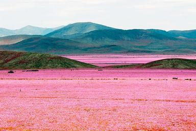 Le fameux désert d’Atacama attire les voyageurs du monde entier car il est témoin d’un phénomène naturel exceptionnel qui se produit tous les quatre ans : une explosion de fleurs. Après de fortes pluies, le désert voit pousser à une vitesse exceptionnelle des millions de fleurs roses et violettes, qui offrent une vue à couper le souffle, digne d’un montage vidéo de très haute qualité. Mais non, c’est bien la nature qui provoque cela. Vous pourrez même vous octroyer une balade à cheval pour parcourir ce désert si particulier.